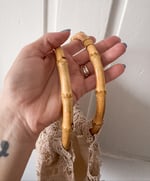 Natural bamboo handles add a touch of organic elegance and a sturdy, comfortable grip, making it as practical as it is beautiful. Whether you are browsing a weekend farmers market, heading to a seaside brunch, or looking for a unique accessory for a summer wedding, this handmade piece offers a perfect blend of sustainable fashion and artisanal charm.
