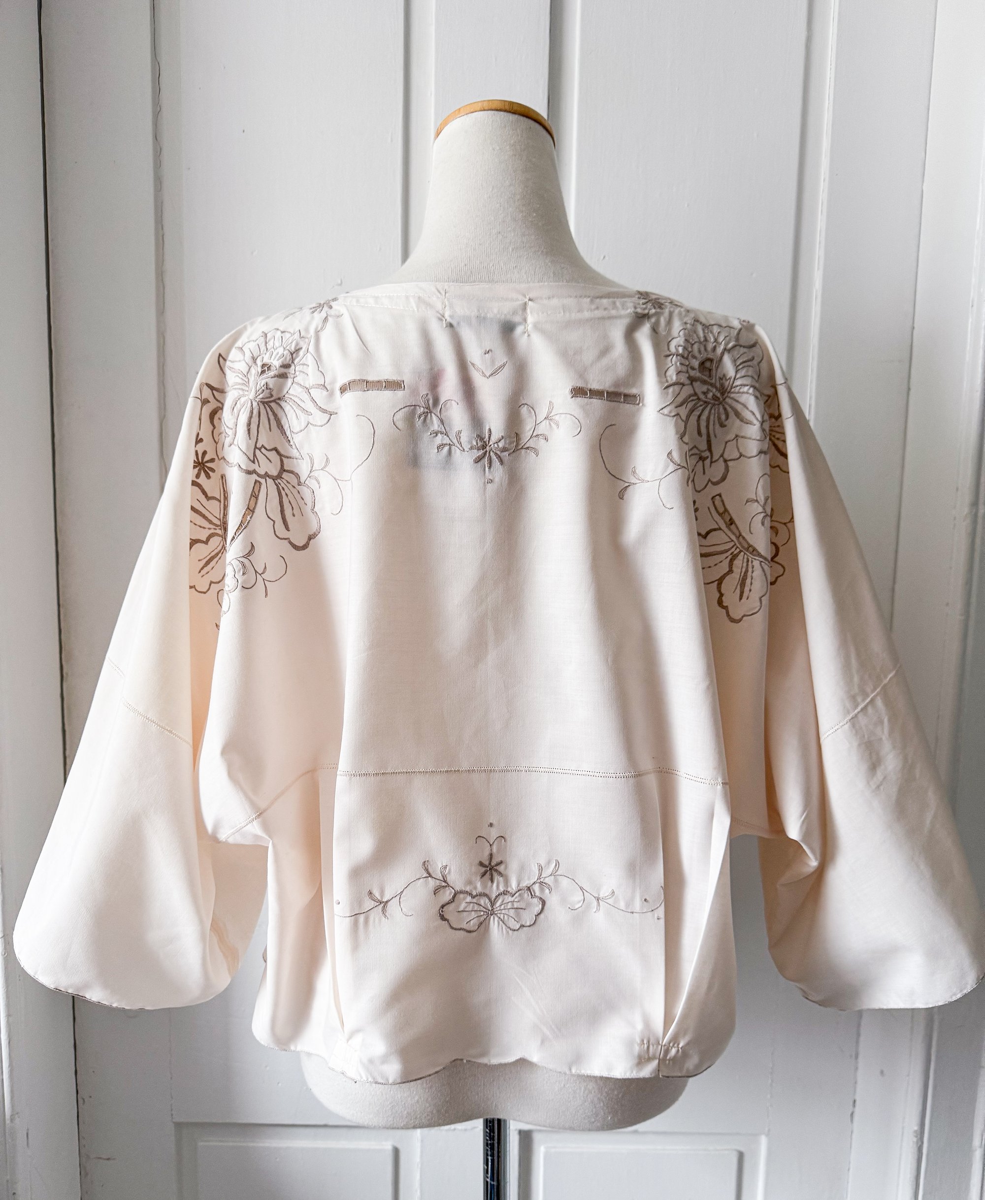 Each detail tells a story—from the original hand-embroidered motifs to the thoughtfully reworked design—making this top truly unique and impossible to replicate.