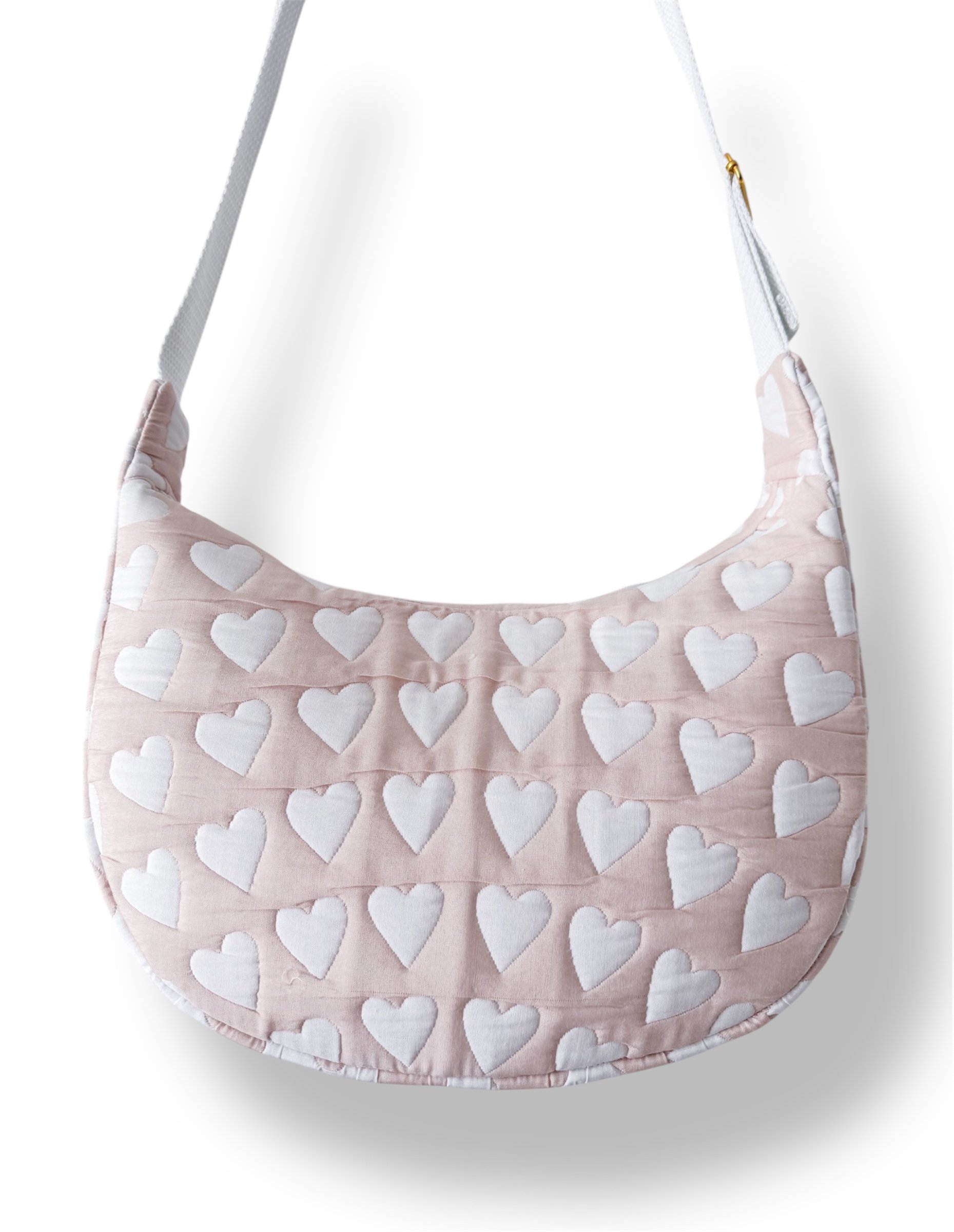 Upcycled Heart Quilt Crescent Bag