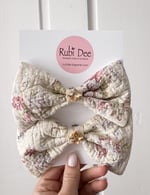 Adorable upcycled Quilt Bow Clips (set of 2)