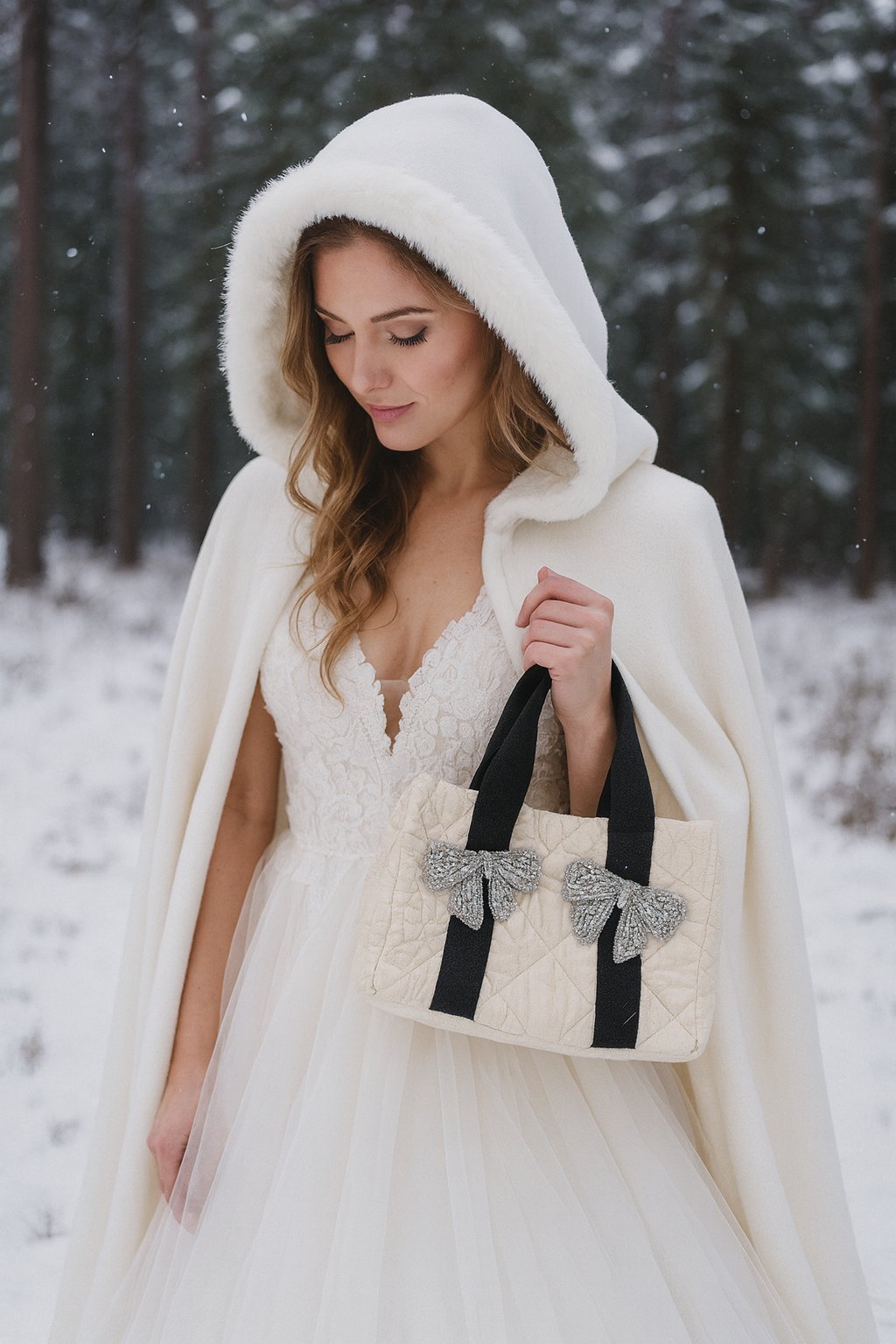 Two hand stitched attached sparkling rhinestone bow appliqués adorn the front, catching the light with every movement and lending a touch of luxe, handcrafted glamour.