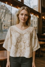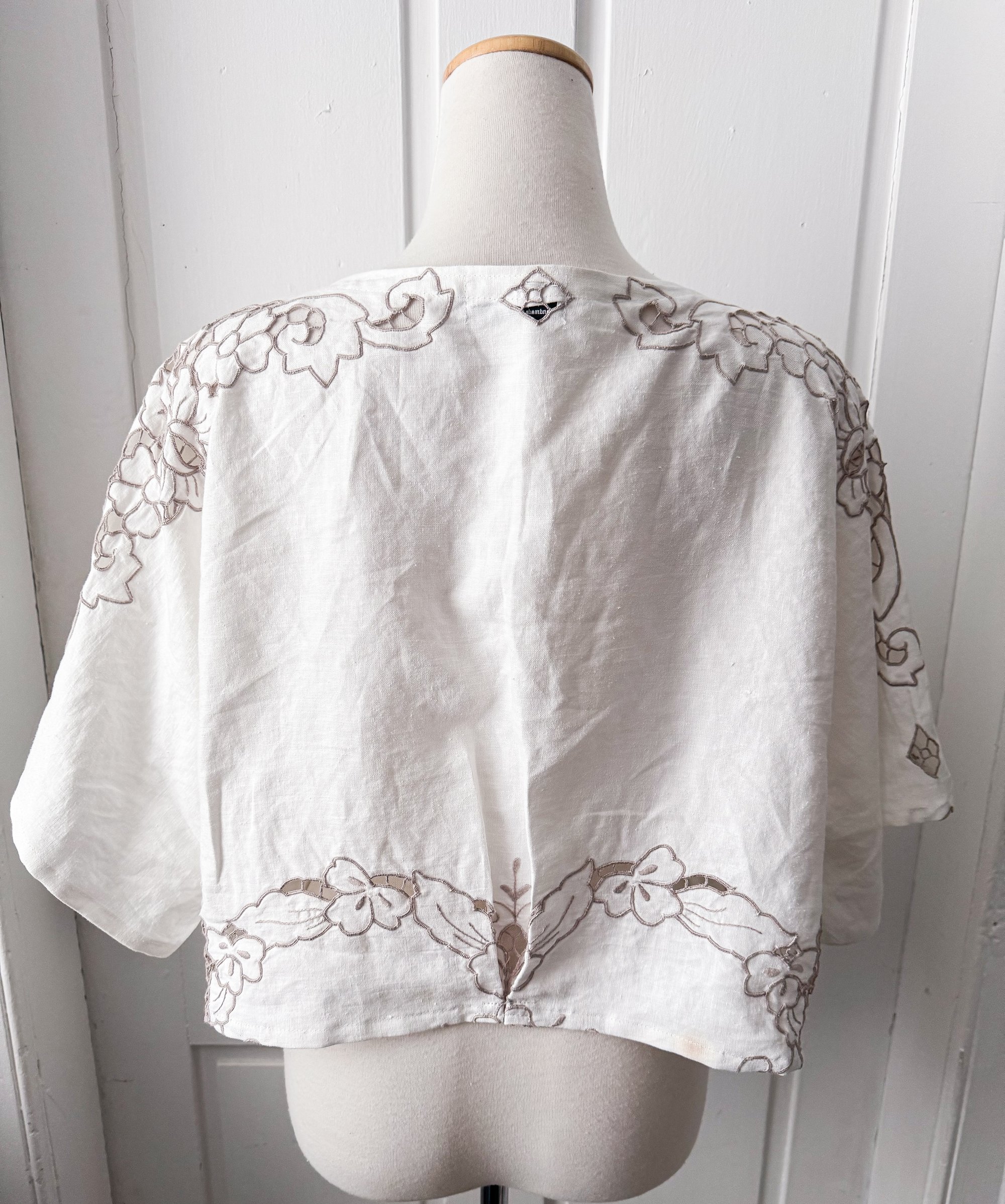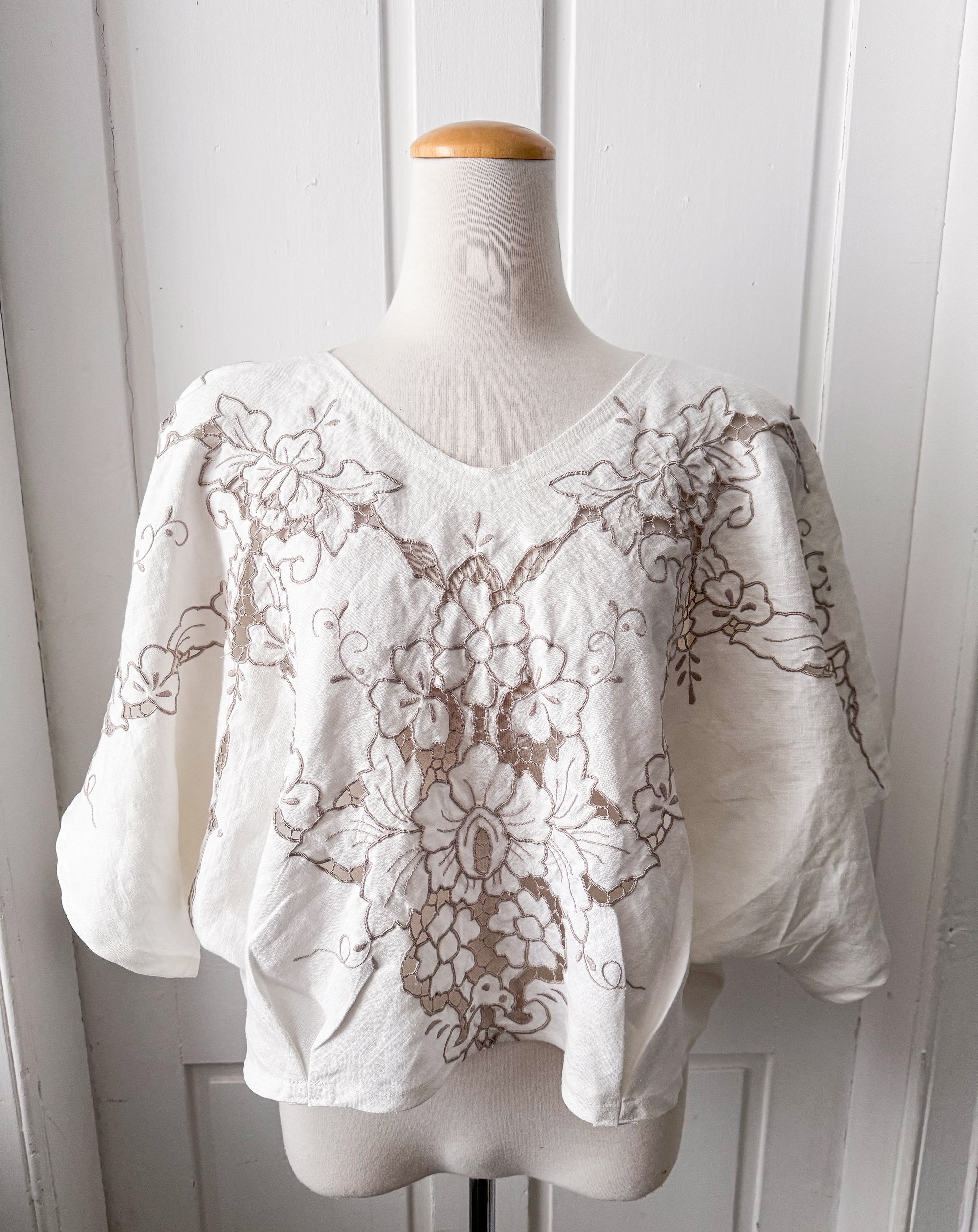 Upcycled Vintage Embroidered Linen Table Cloth Boho Top